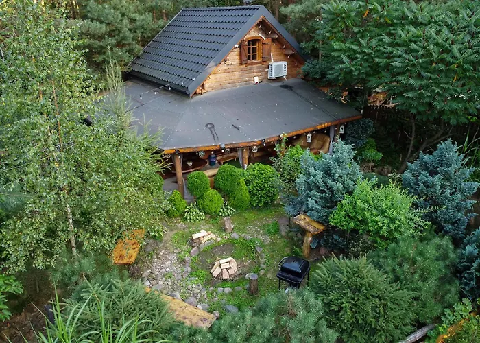 Die 1-Zimmer- Domek W Ogrodzie Caloroczny 800M Od Parku Wodnego Suntago Ranczo Gold Mania verfügt über eine Terrasse mit Blick auf den Garten und ist 44 Autominuten vom Flughafen Warschau-Frédéric-Chopin entfernt gelegen.